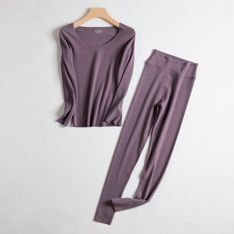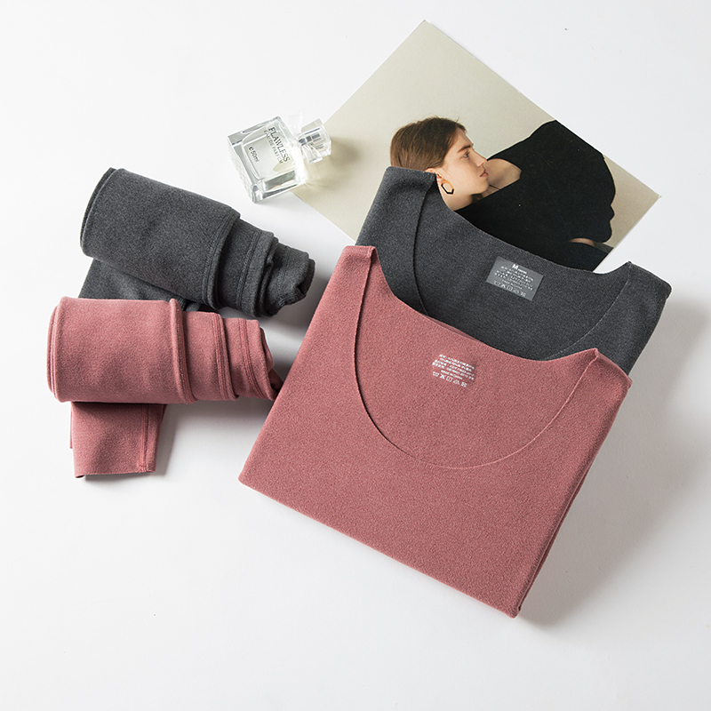 Double-sided velvet women's low neck thermal underwear slim bodyless plus fleece thick self-heating body autumn clothes autumn pants set