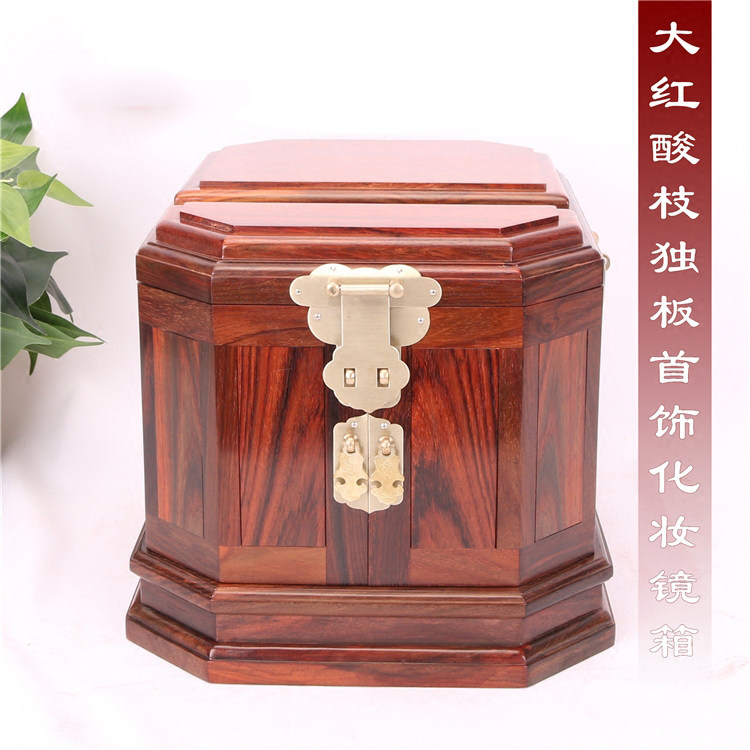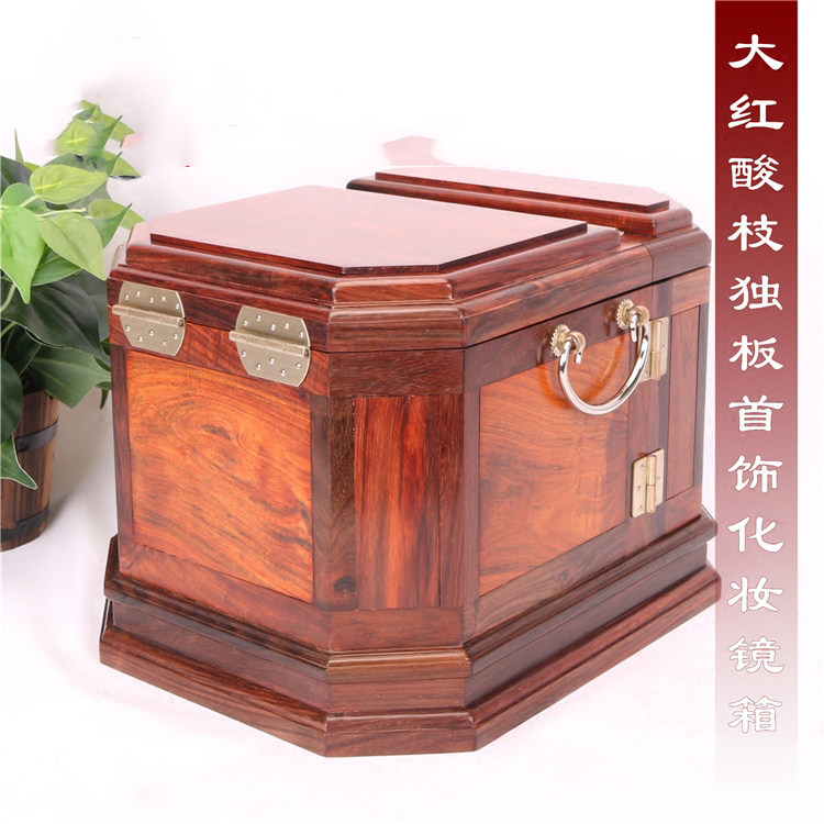 Big red acid branch single board jewelry box wooden retro mahogany knot wedding jewelry solid wood jewelry storage cosmetic mirror box
