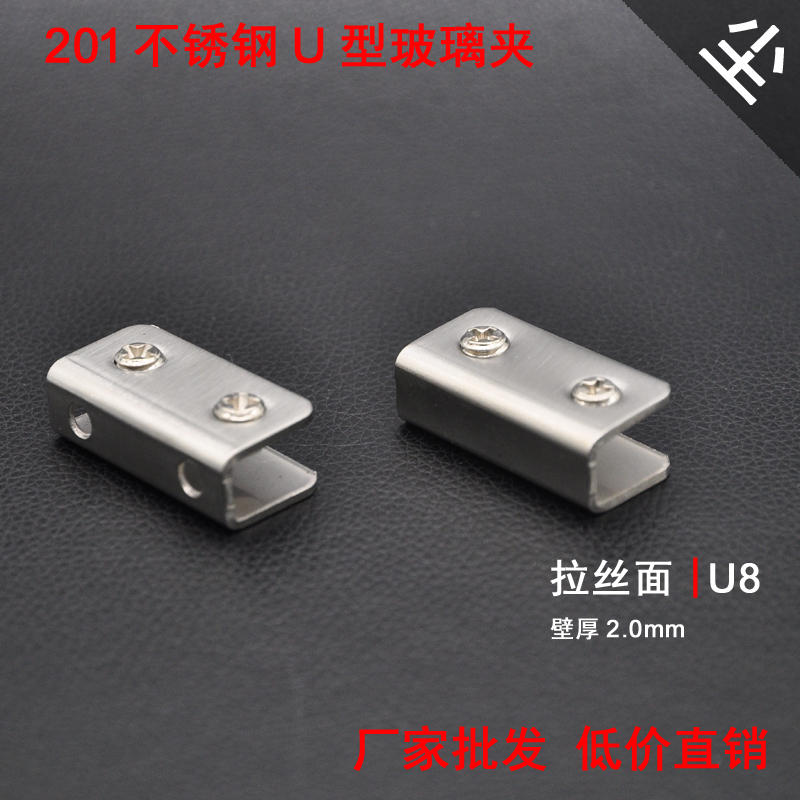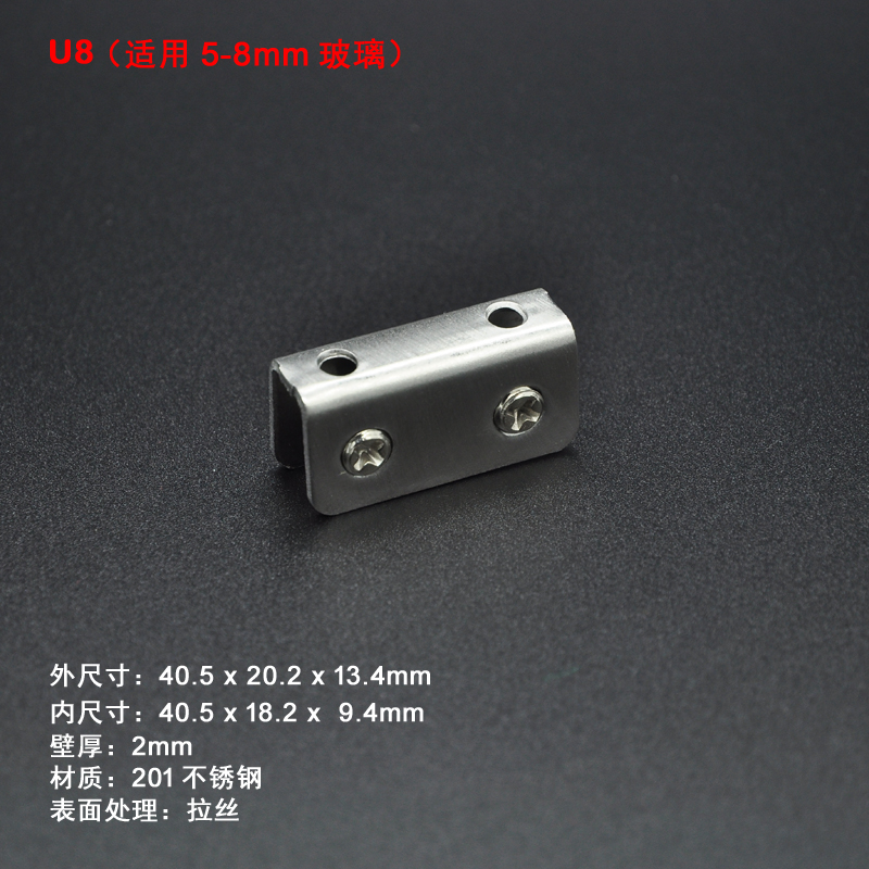 8mm201 stainless steel U-shaped glass clamp one-word laminate glass clamp back non-porous fine glass fixing clamp