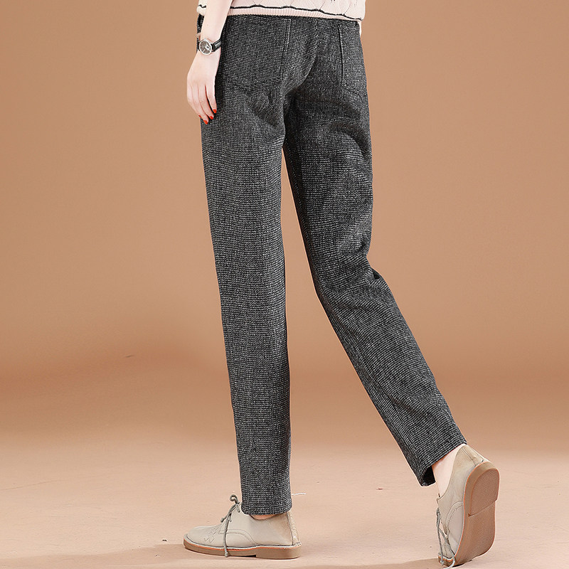 Han tide attack striped retro velvet slacks women's winter thick elastic waist warm straight Harun long pants