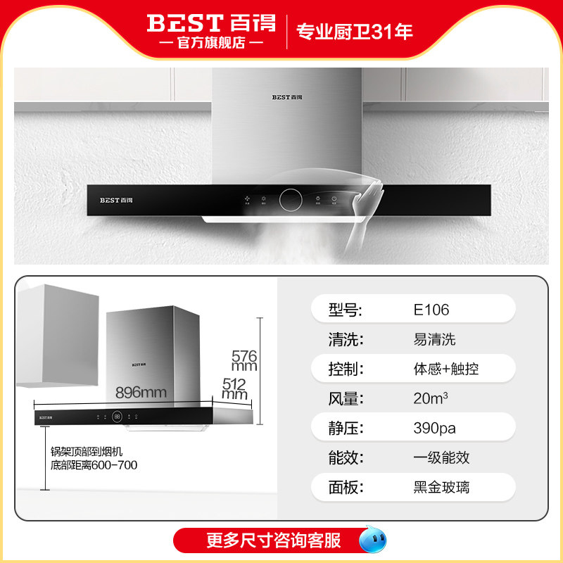 East China 100 to E106 top suction type ventilator European style home kitchen big suction special price body sensation row smoker