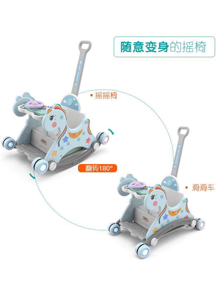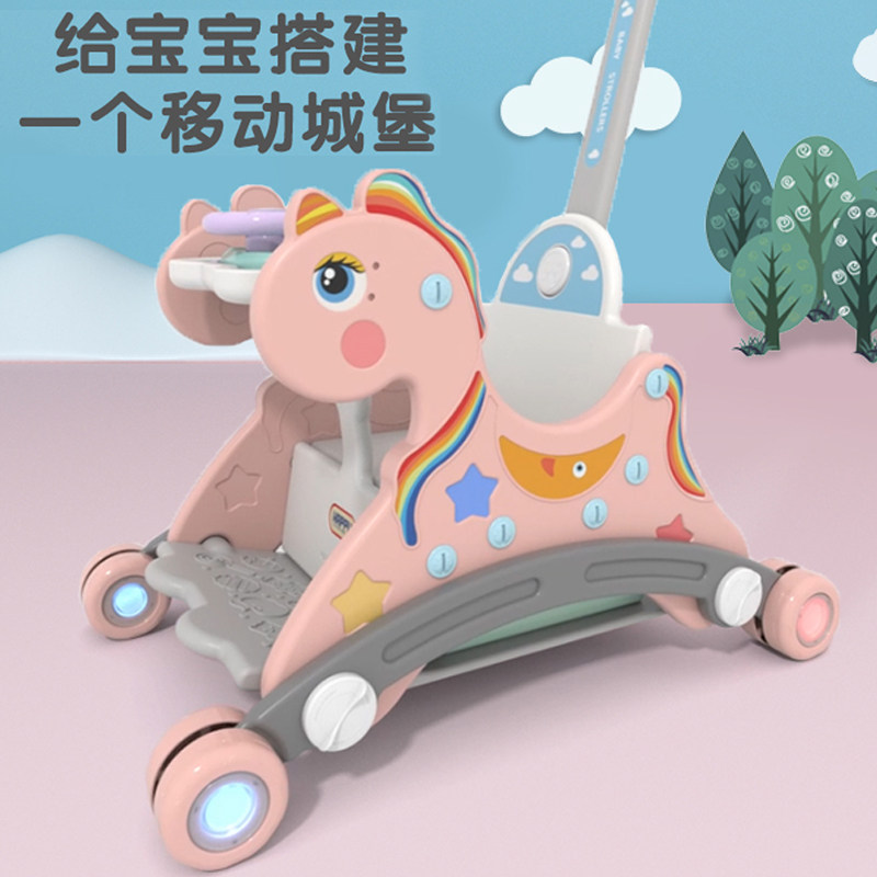 Little trojan horse Children rocking carriage Baby toy Baby multi-functional dual-use two-in-one birthday gift