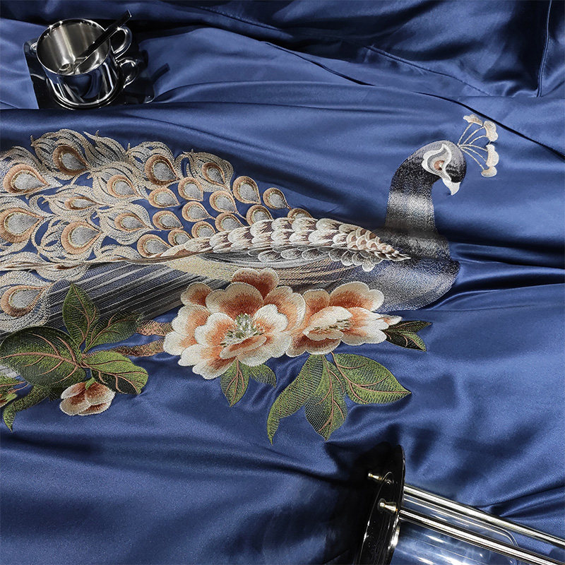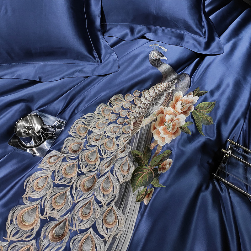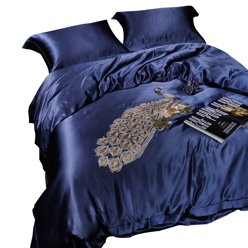 Real silk bed with four sets of heavy weights 100% mulberry silk t quilt cover sheet silk New Chinese embroidered flower bed bedding