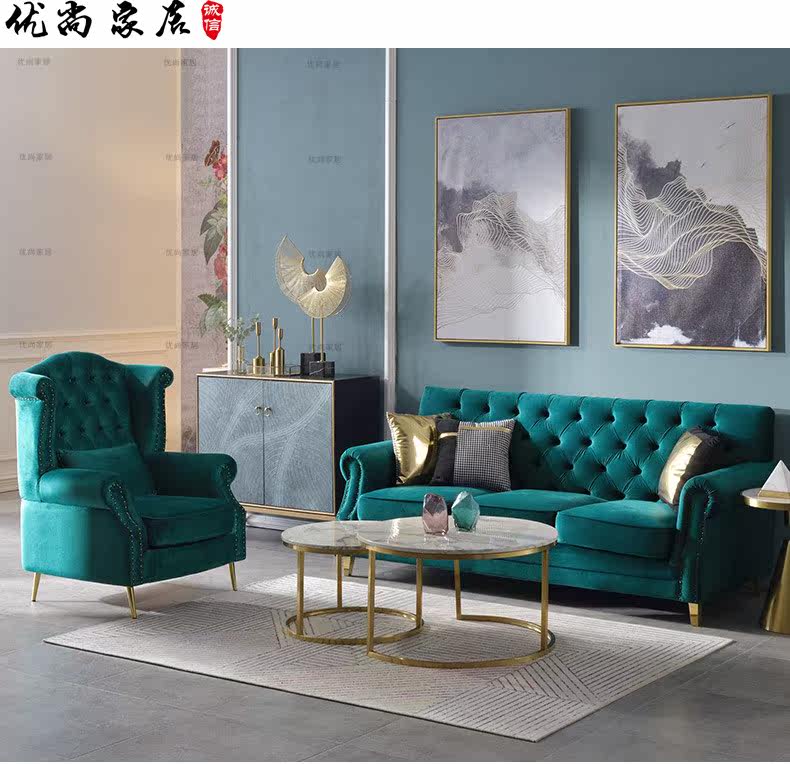 Nordic style light luxury velvet fabric double three person villa living room clothing store beauty salon designer customization