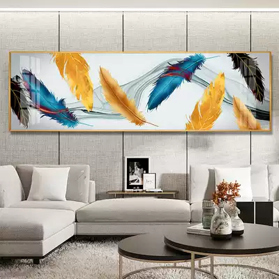 Modern simple single horizontal Crystal porcelain painting decorative painting fashion bedroom bedside painting feather living room light luxury atmospheric hanging painting