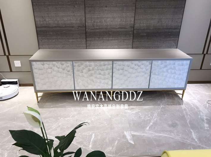 American neoclassical shell TV cabinet light luxury silver gray living room decorative cabinet post-modern solid wood metal TV cabinet