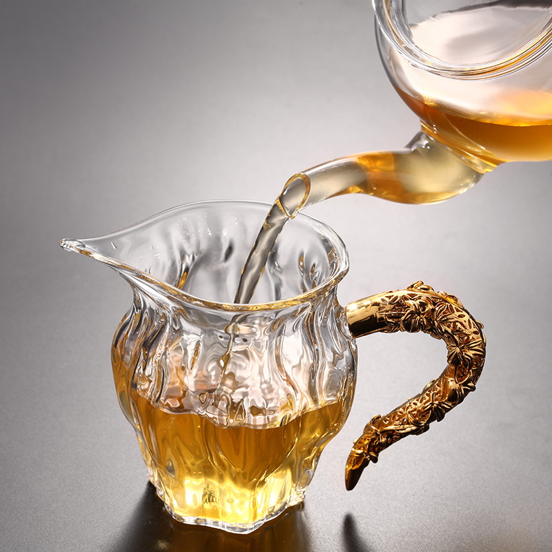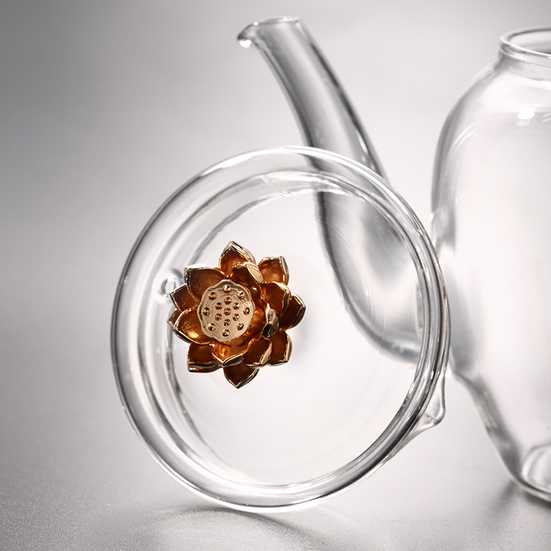 Lotus heat-resistant glass teapot black crystal furnace small kettle kung fu small green orange copper handle teapot justice cup