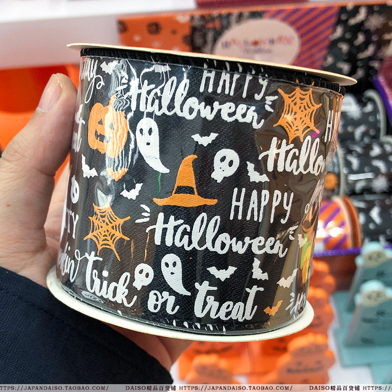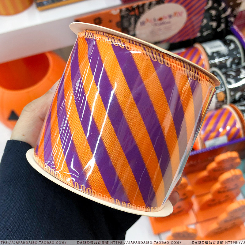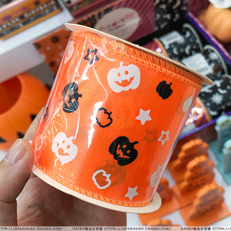 Japan Grand Creation DAISO Halloween Qualifies Orange Pumpkin Decorative Gift packaging with a wide satin canvas belt