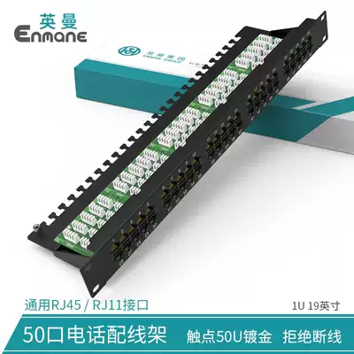 Enmane telephone wiring rack Modular 1U19 inch cabinet room wiring type rear wiring rack 110 telephone crystal head socket 50 ports 100 pairs of voice wiring rack