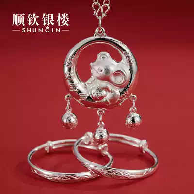 Shunqin Silver building 999 feet silver year of the rat good baby sterling silver card shoe buckle silver bracelet set to send children full moon week 100 years old