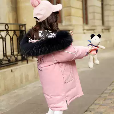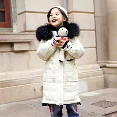 British next kiss' girl down jacket medium and long version 2020 new Korean children Foreign style big fur collar coat