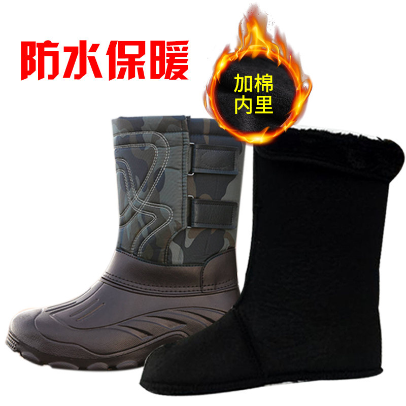 Autumn and winter cold ice fishing rock fishing dedicated fishing boots warm boots male waterproof anti-slip snow shoes fishing anti-slip boots