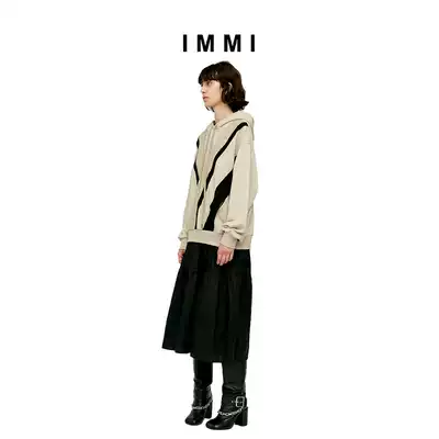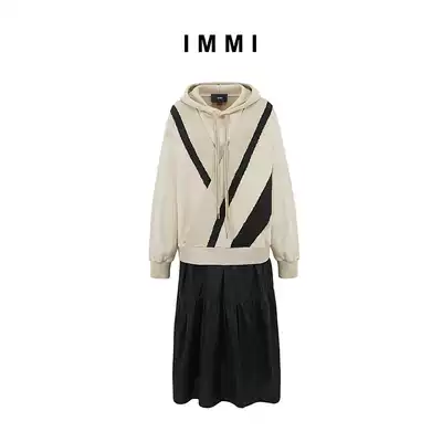 (Designer brand IMMI) pleated loose color block hooded sweatshirt dress 192DS011Y