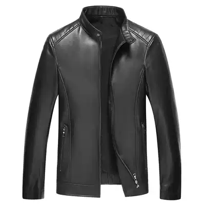 Handsome leather leather men's sheep leather motorcycle leather jacket Haining short stand collar thin single spring and autumn coat