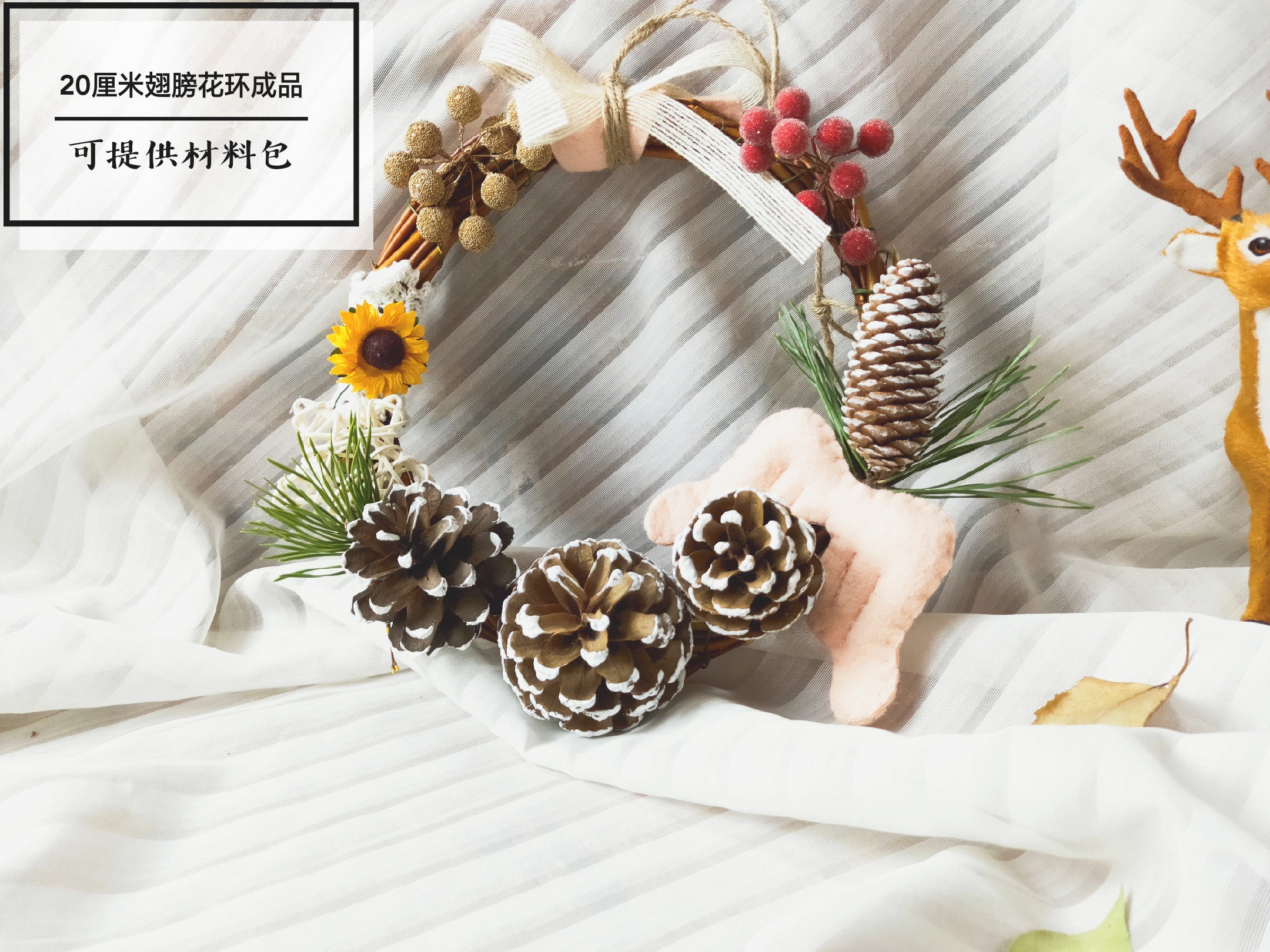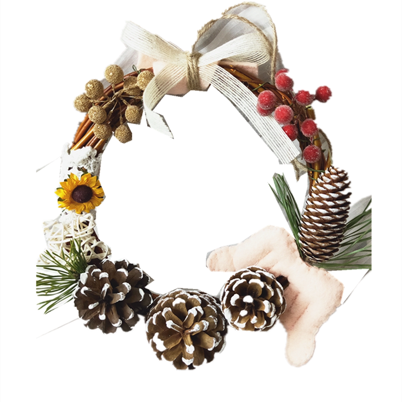 Original Christmas wall hanging garland decoration wool felt pine cone red fruit handmade diy material bag door decoration door hanging