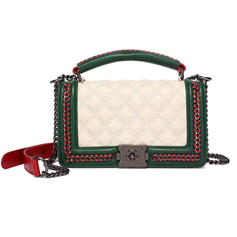 Europe station women's bag 2022 new full leather small fragrant wind rhombus chain bag genuine leather single shoulder inclined satchel bag