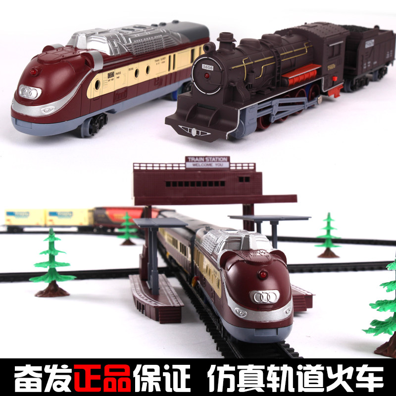 Super long large retro train track toy set electric simulation children's high-speed rail harmony model puzzle