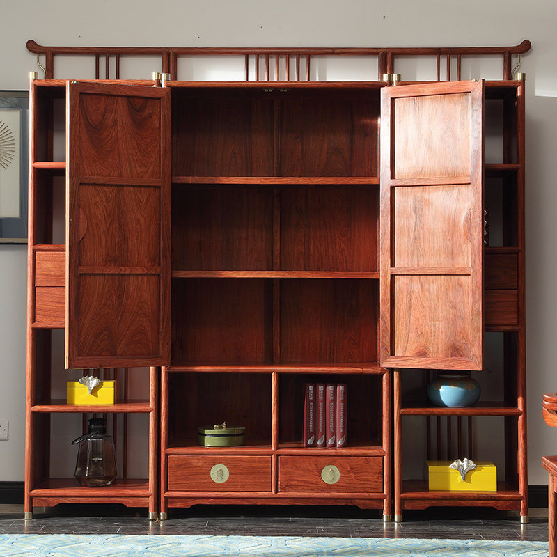 Red Wood Furniture Hedgehog Purple Sandalwood Bookcase Display Shelve New Chinese Solid Wood Antique Flower Pear Wood Bookshelf Combo