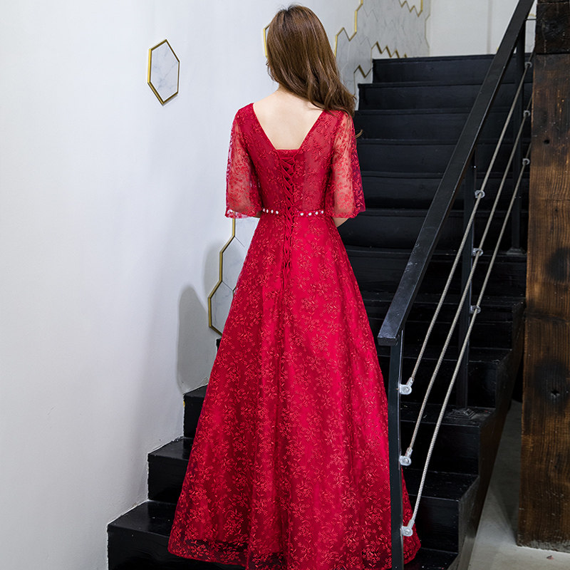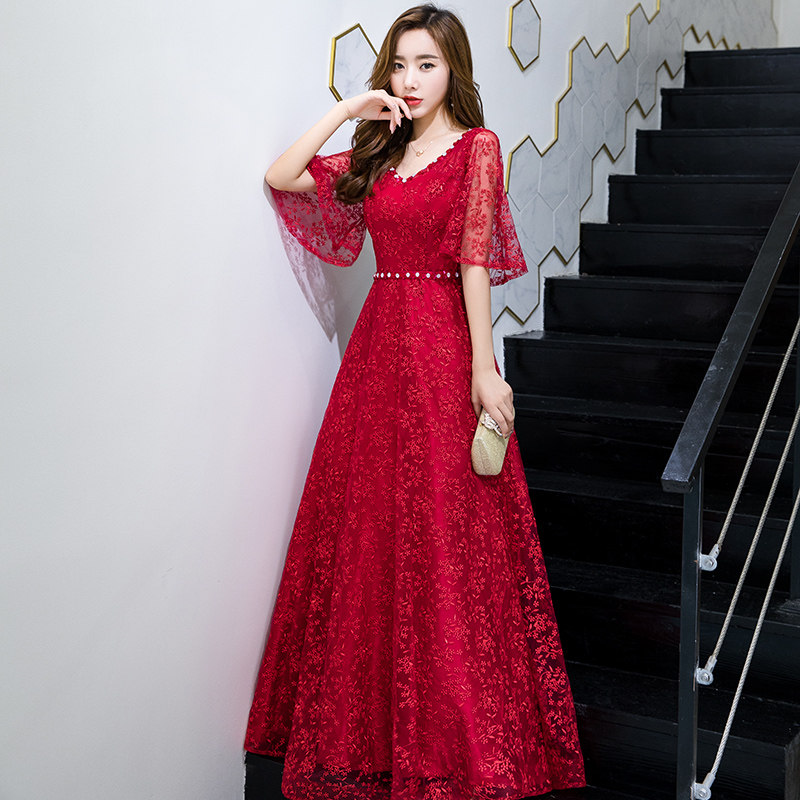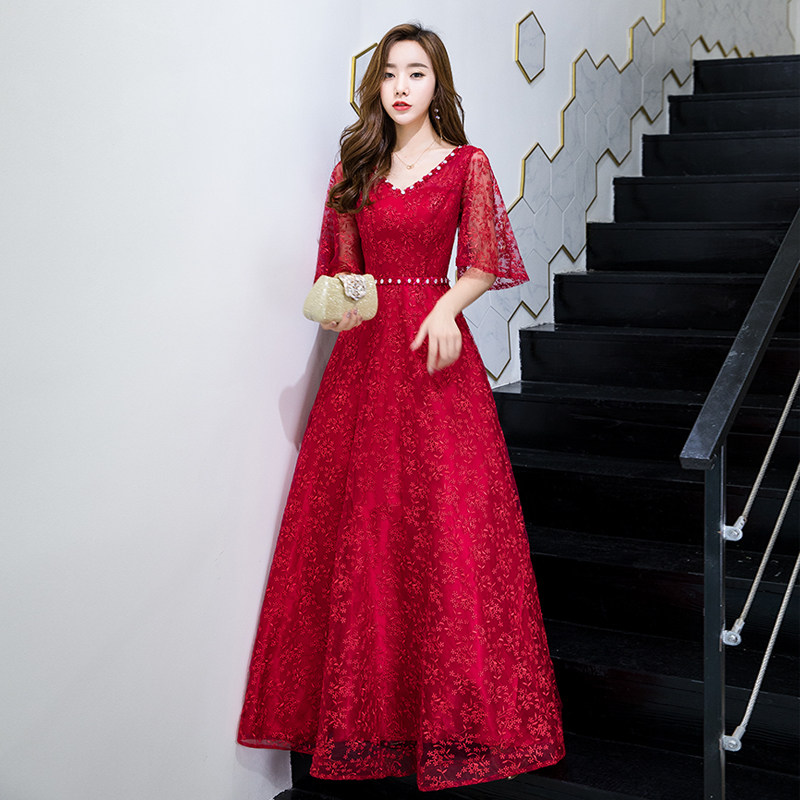 Bridal toast with 2022 new spring and autumn long sleeves wine red with slim wedding gown The woman Qingkura does not deback