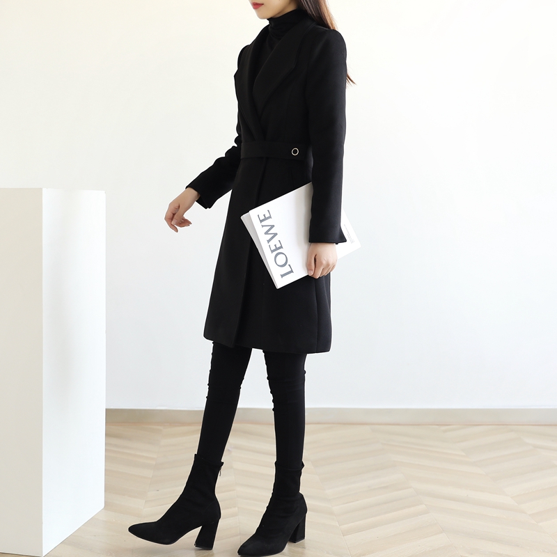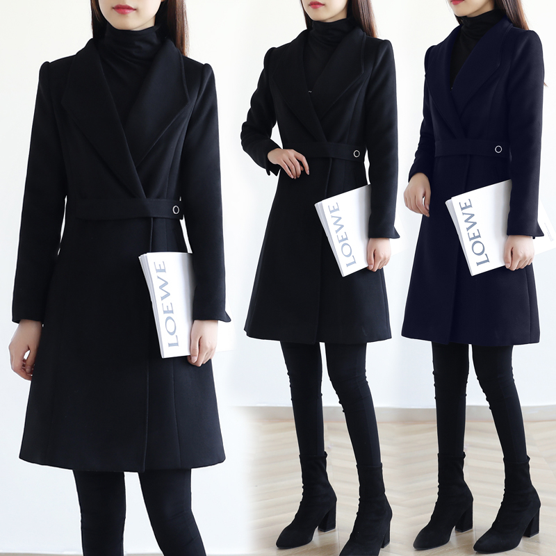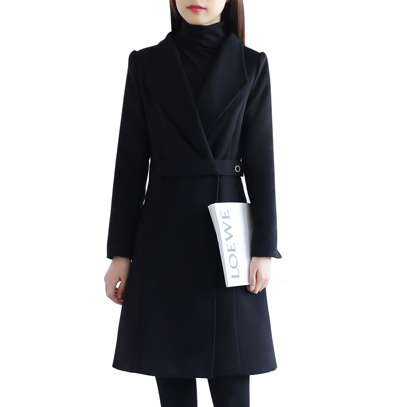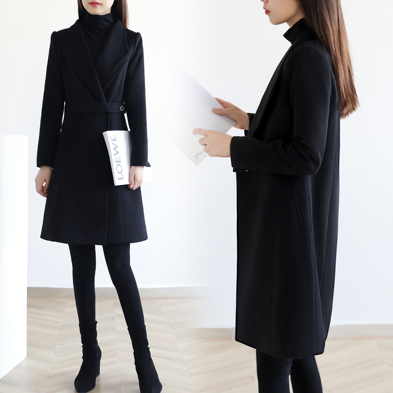 Professional woolen coat women's mid-length new autumn and winter small black thickened tooling overalls woolen coat