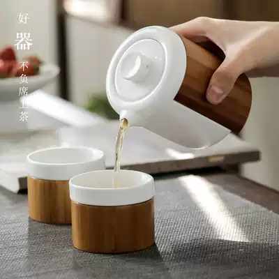 Travel kung fu tea set set a pot of two cups of anti-hot ceramics simple accompanying ceramic creative tea set