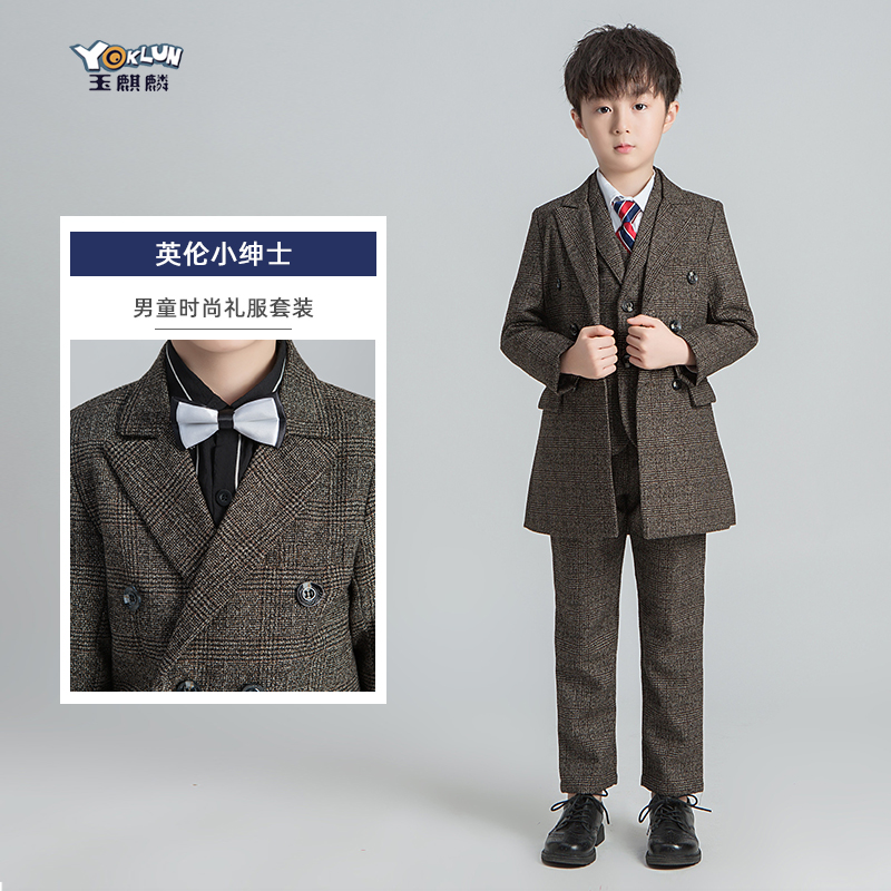 Boy's suit jacket spring and autumn middle-aged children's woolen coat windbreaker mid-length dress woolen suit suit England