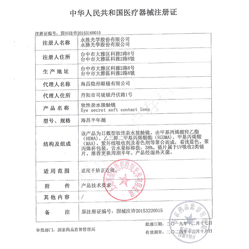 Hailien contact myopia glasses half a year throw 1 box oxygen eye soothing eyes transparent oxygen transparent thin original