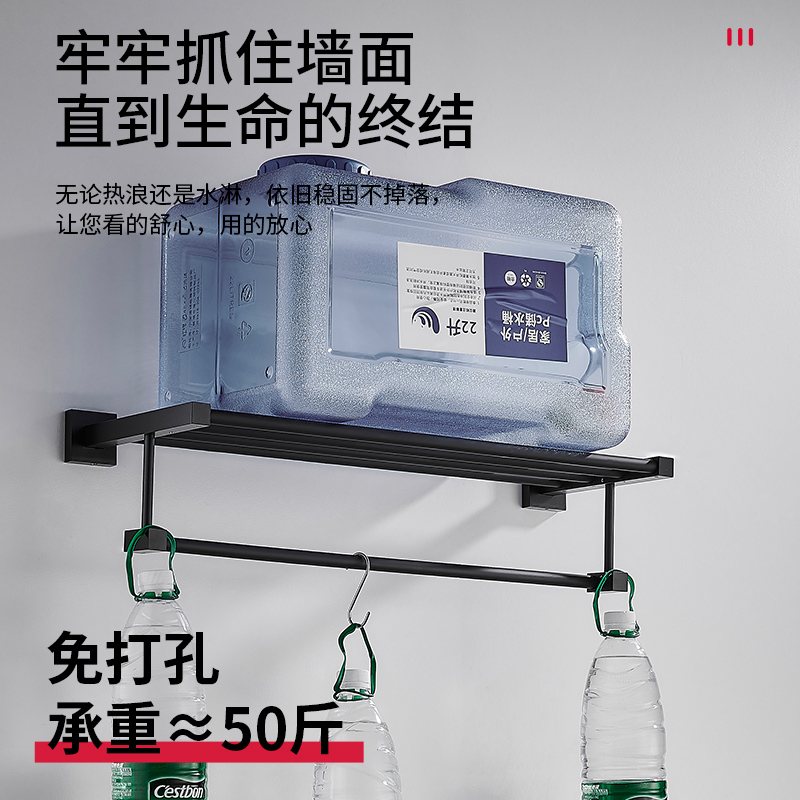 Lezhijia black towel rack Space aluminum non-perforated powder room shelf Toilet bath towel bathroom pendant Wash your hands