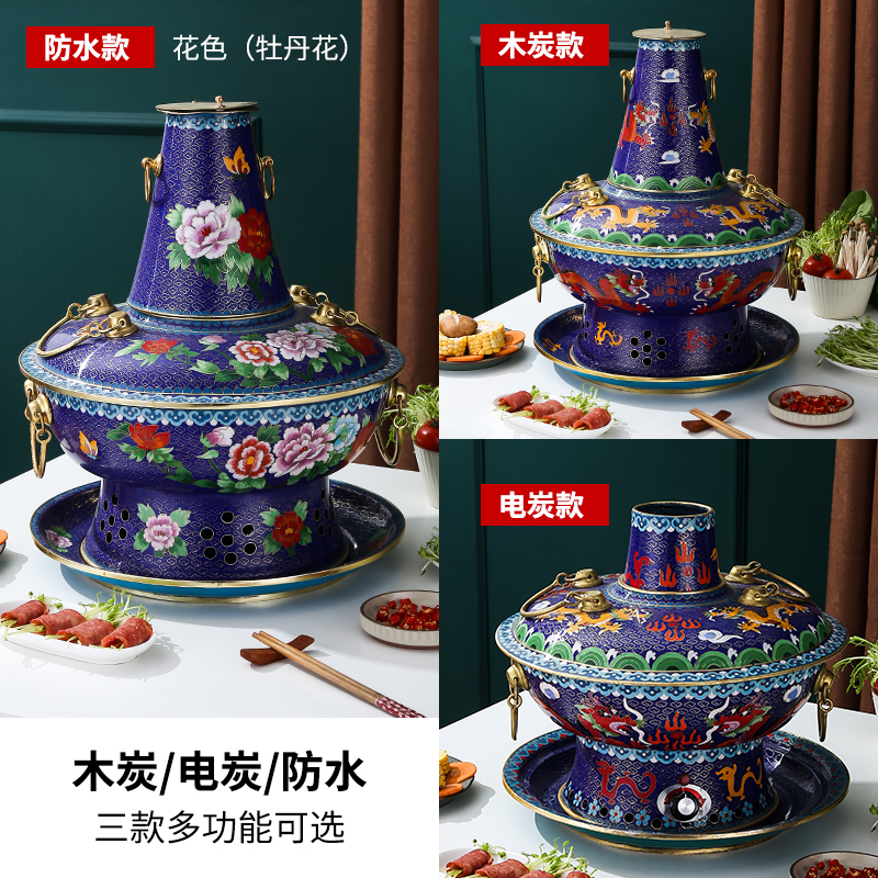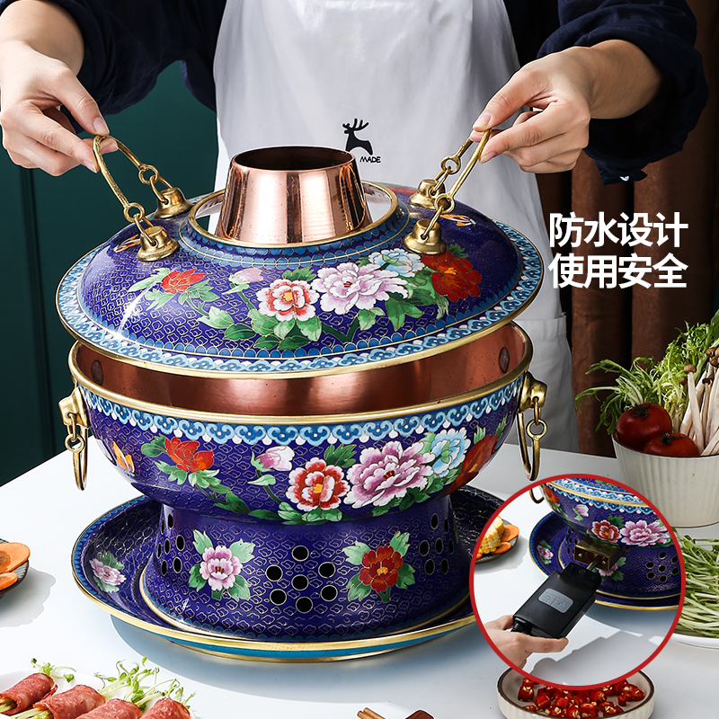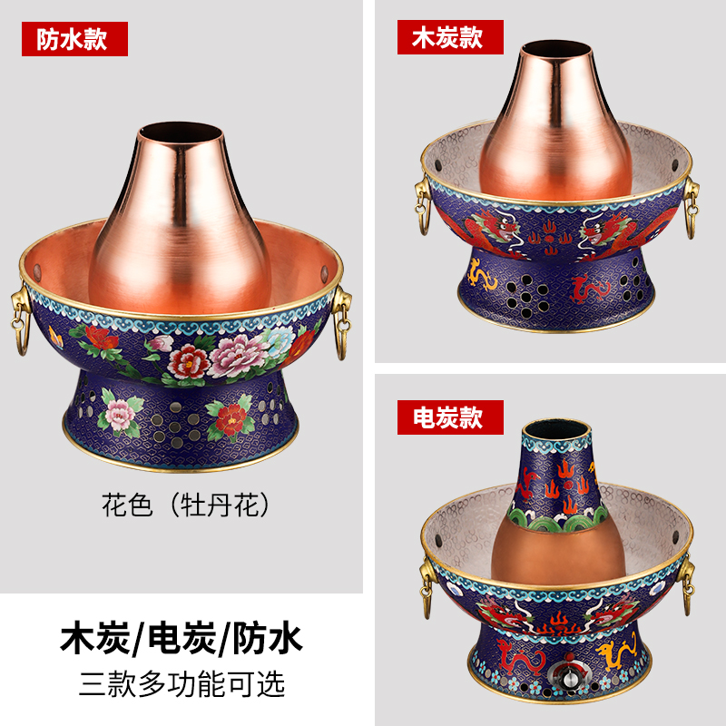 Old Beijing Jingtai Blue Copper Hot Pot Home Pure Red Copper Pan Charcoal Old-style Boiled Mutton Yuanyang Pan plug-in electric carbon dual-use