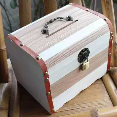 Creative solid wood money deposit box children's money box with lock oversized banknote coin deposit box pine flap safe