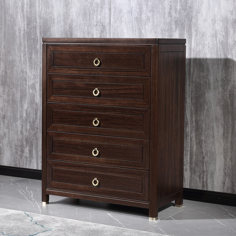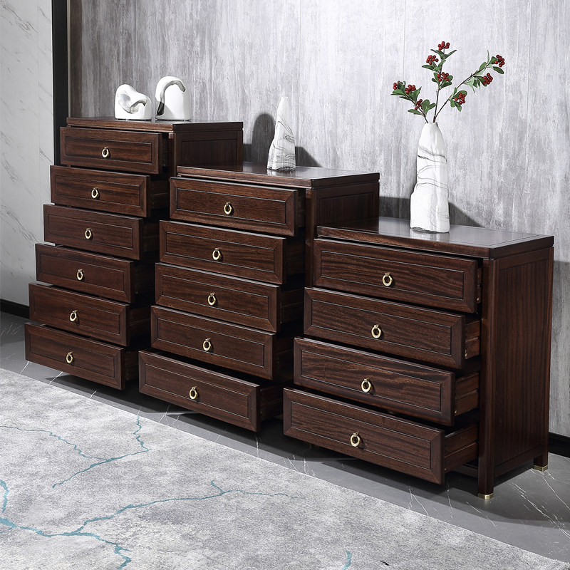 Ebony new Chinese style all solid wood four or five chest of drawers bedroom storage cabinet villa modern furniture chest of drawers six chest of drawers
