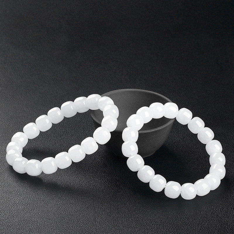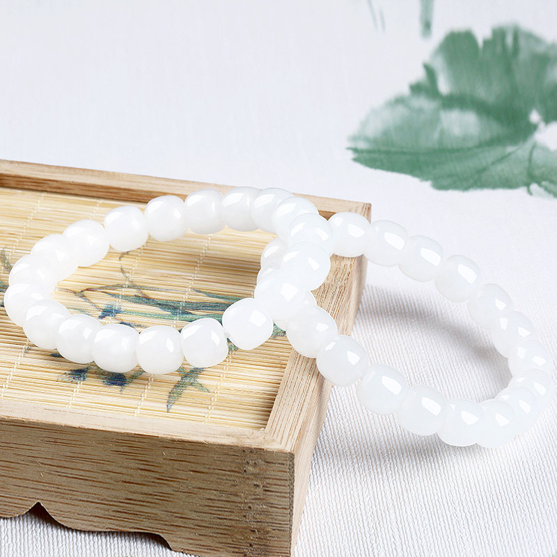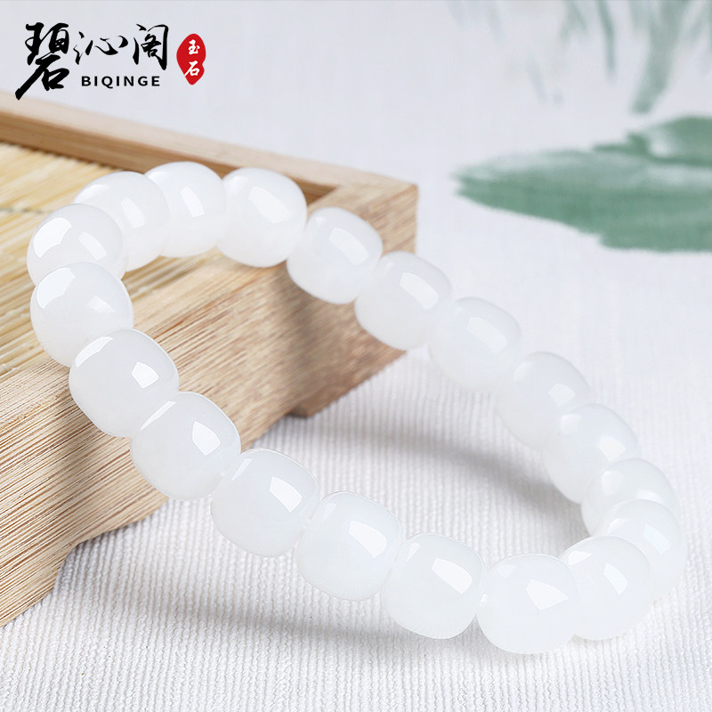 Biqingge natural Hetian jade bracelet White jade road pass transit bead jade bracelet for men and women lovers jade hand string