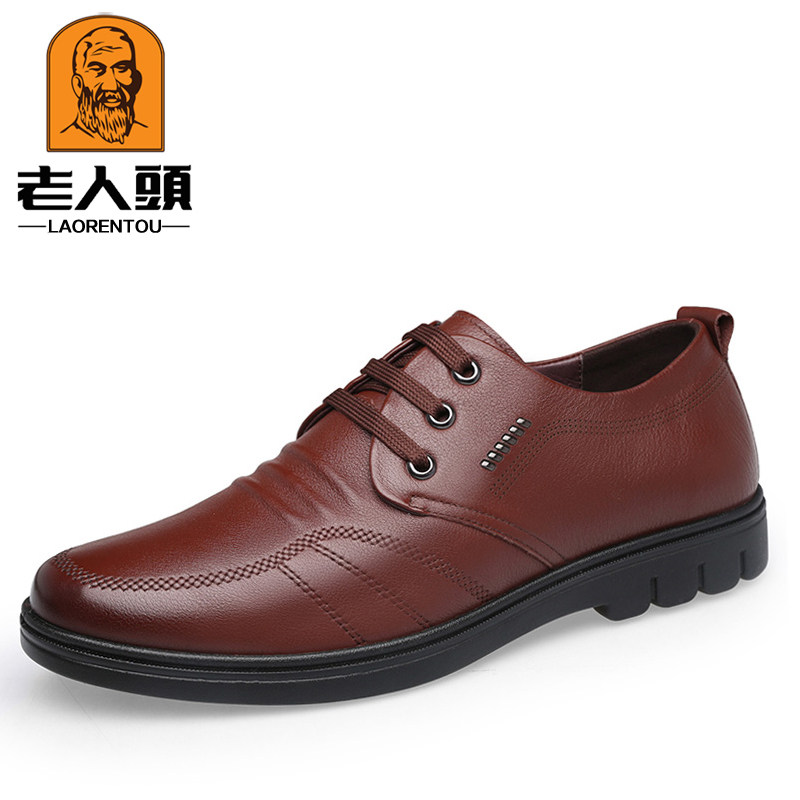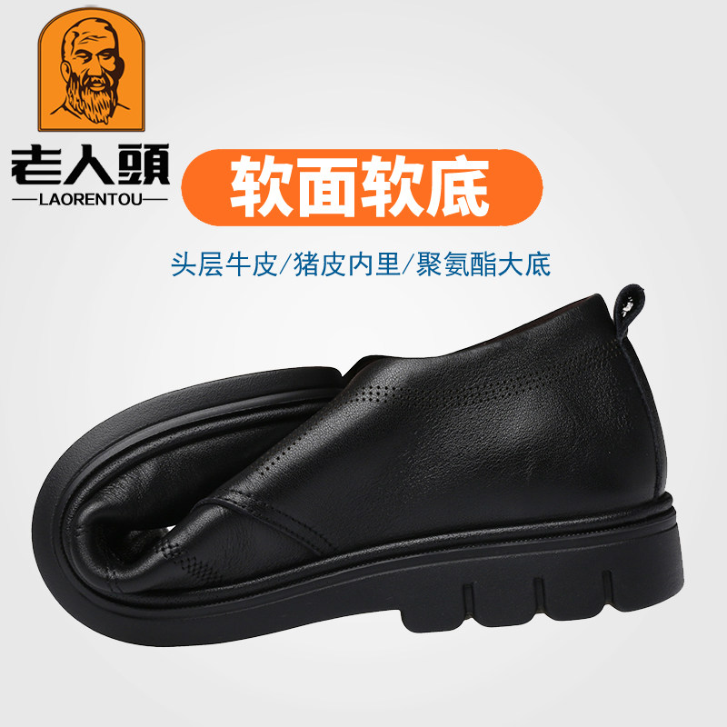 Old man's head men's shoes genuine leather business casual leather shoes men's autumn new soft face soft bottom positive dress with velvet big code leather shoes-Taobao