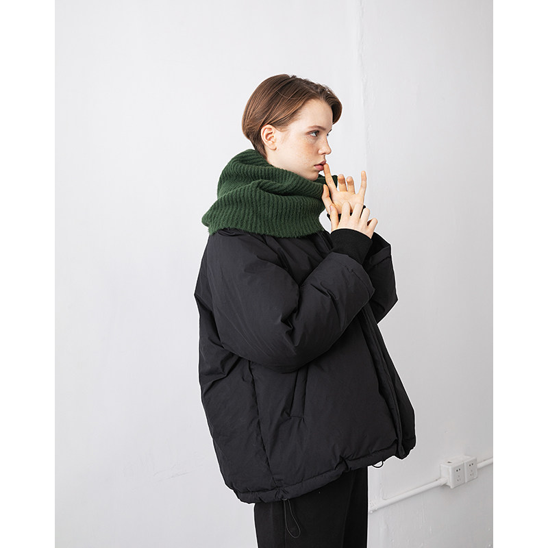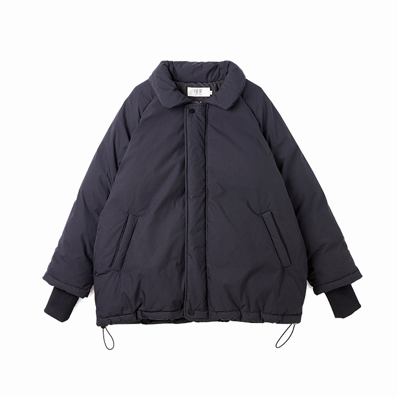 Slow tea mcha black boyfriend style white duck down thickened down jacket women's 2022 winter mid-length version snow-proof coat