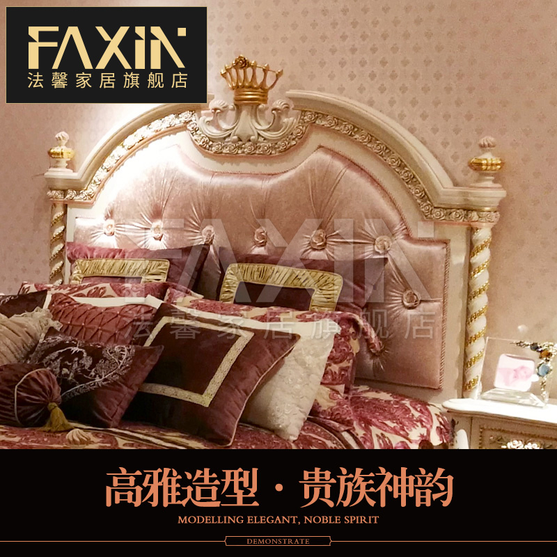 Luxury European-style solid wood double bed large villa bedroom wedding bed French court princess bed furniture customization