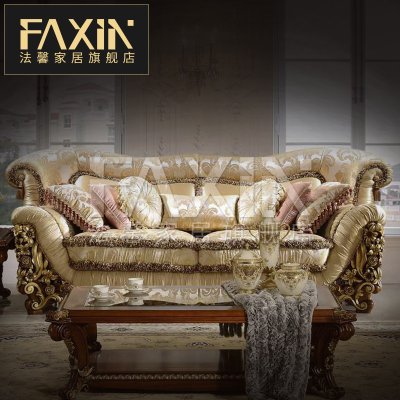Italian European Villa Living Room Fabric Sofa Luxury French Solid Wood Carving Sofa Combination Furniture Customization