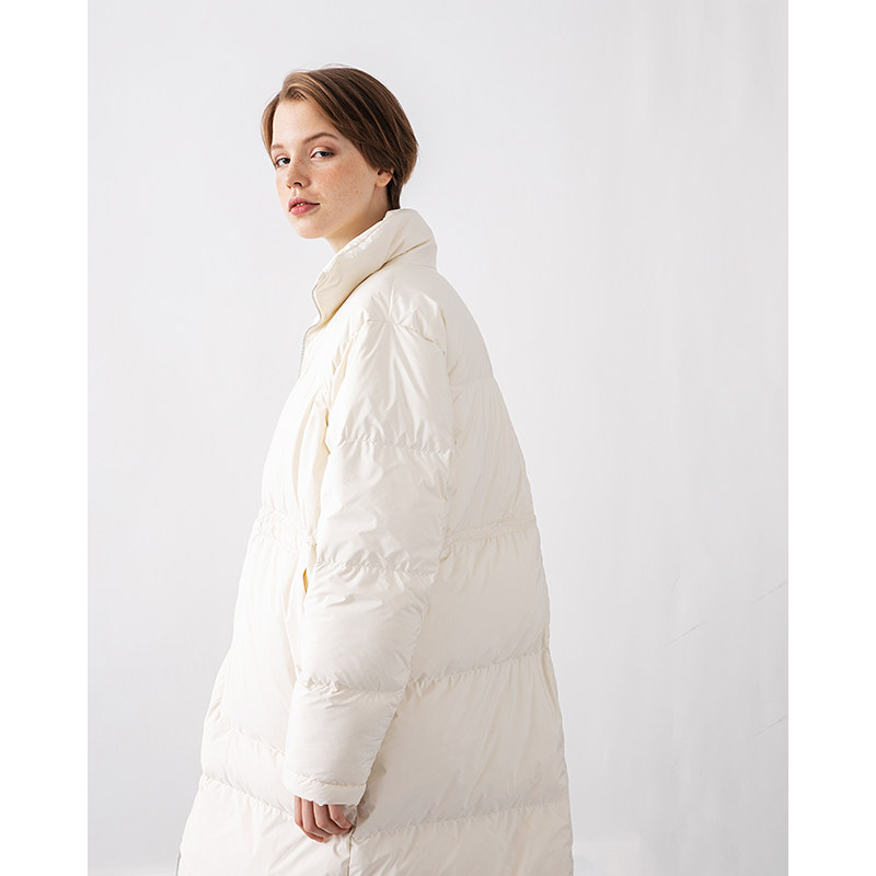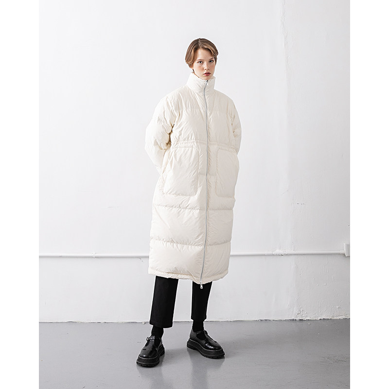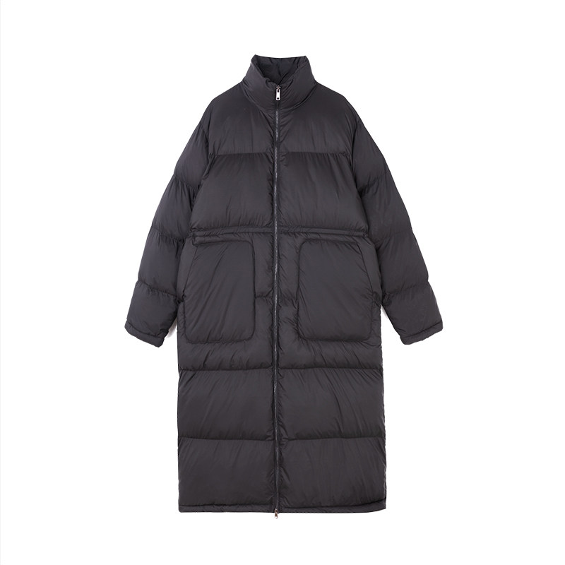 Slow Tea 90 White Duck Suede Collar Thickened long version down Down Clothing Women Winter Soft Loose No Hat Brief Commute Black White
