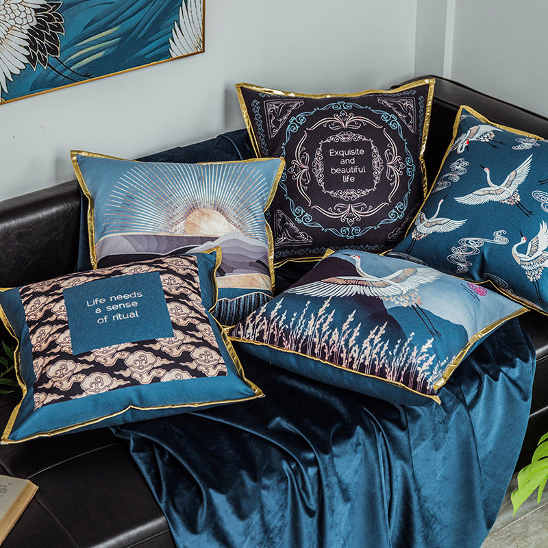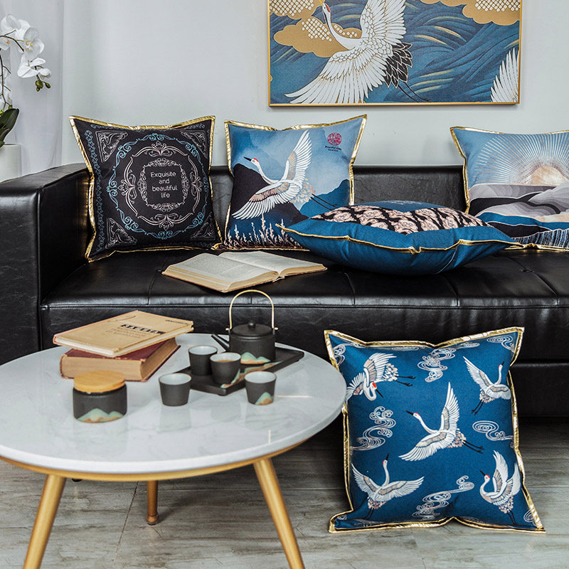 Light and luxurious new Chinese style sofa cuddling back cushion Living room sofa cushions Pillow Cotton Linen Pillow Leather Bag side leaning pillowcase
