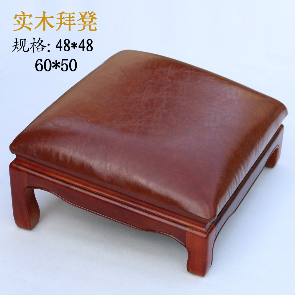 Large solid wood kowtow kneeling mat Buddha mat meditation futon stool imitation leather padded Buddha kneeling mat for home use