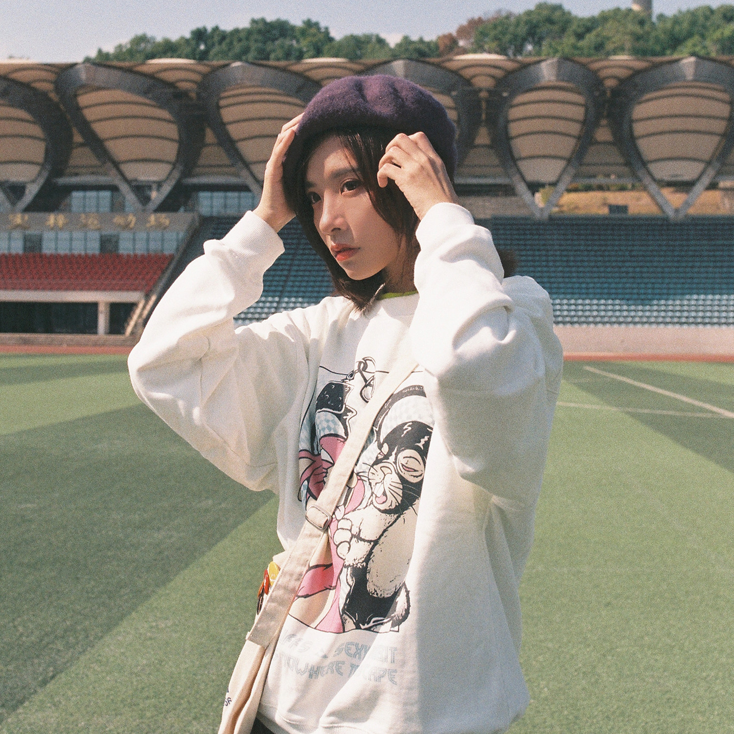 HUGALLGUILT19 autumn and winter cartoon rabbit cartoon print round neck loose couple national tide sweater men and women