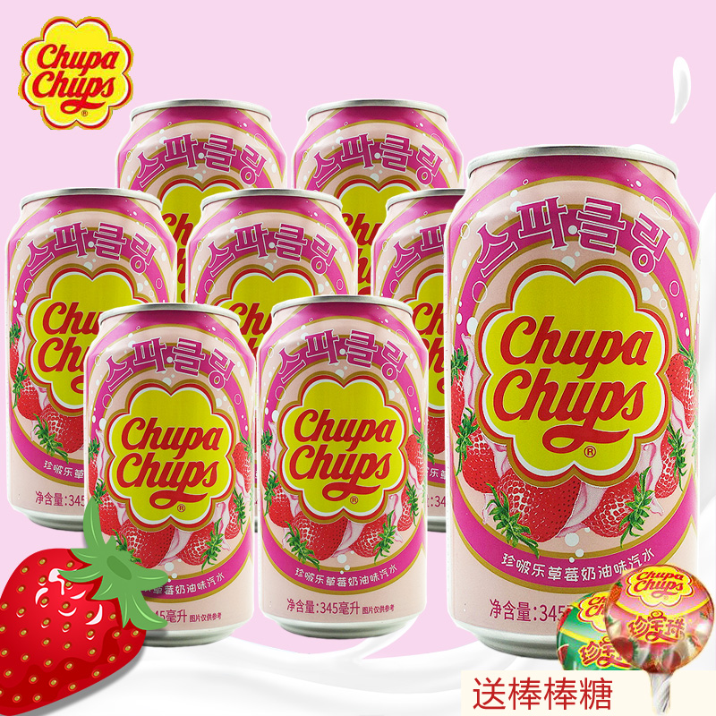 South Korea Imports Treasure Everest Fruits Pop Music Sodas Real Treasure Pearl Cream Strawberry Flavor Carbonated Drink 345ml
