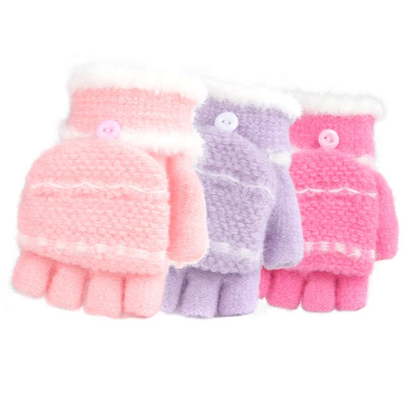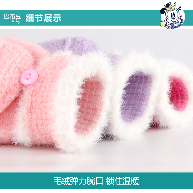 Babu bean clamshell gloves female winter cute student half finger warm plus fluff thickened children's baby writing