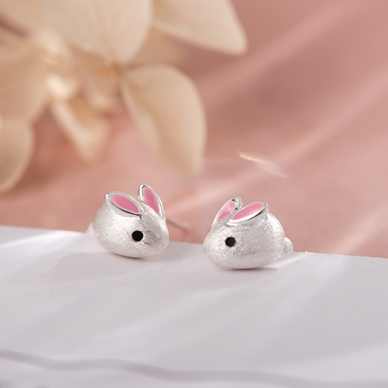 2022 new trendy sterling silver rabbit ear needle ear bone cute earrings jade rabbit children girl ear jewelry summer day