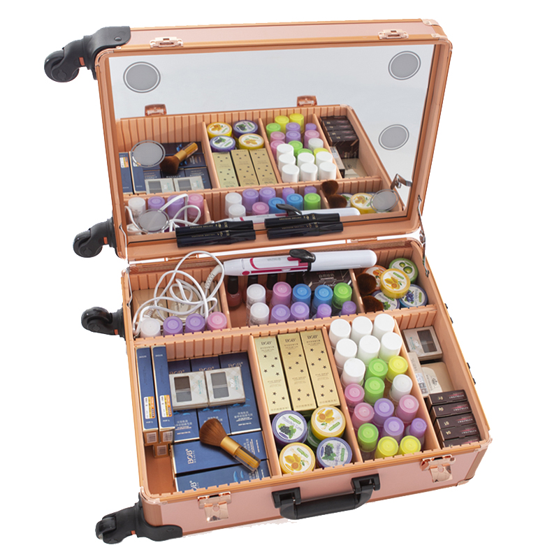 Large capacity draw-up box with lamp large-capacity draw-up box professional makeup artist beauty outdoor toolbox light box