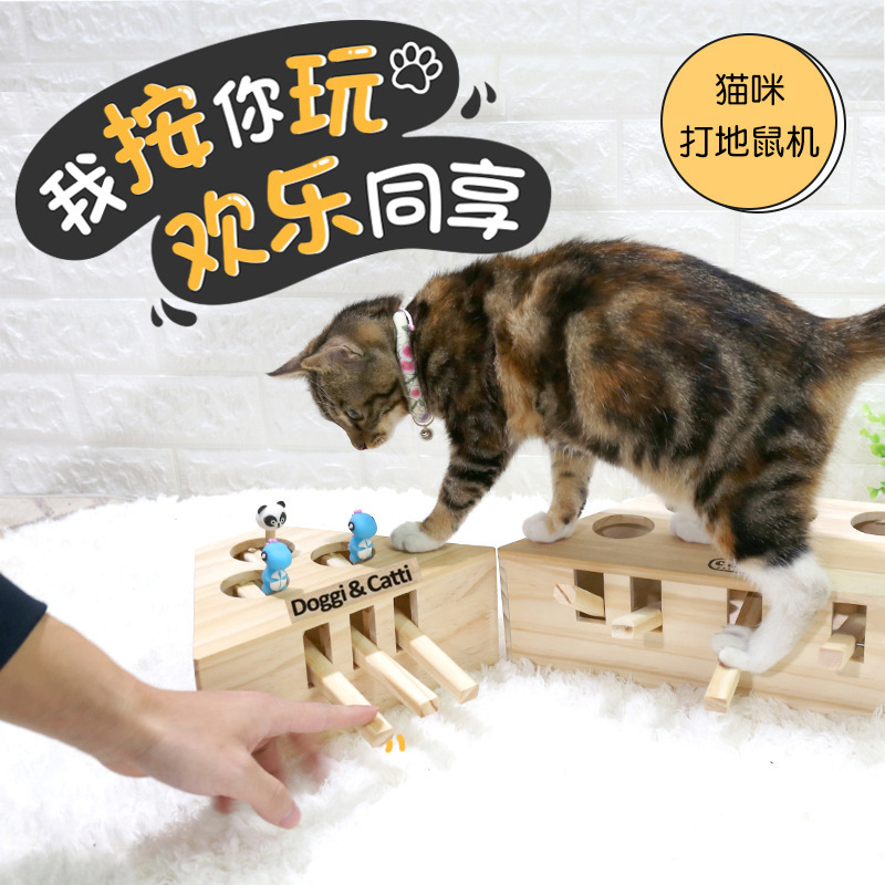 New fumbling cat toy beating ground rat machine cat grabbing board interactive puzzle three-hole five-hole solid wood pet kitty supplies