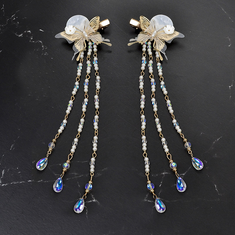 Carameise Ancient Wind Headwear Butterfly Flow Su Hair Clip Daily Teenage Girl Hanfu Accessories Performance Headwear