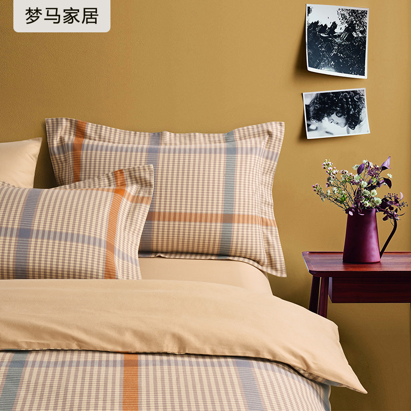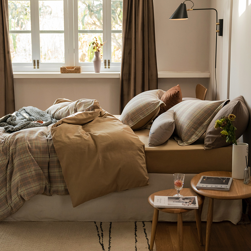 Autumn Winter Pure Cotton Color Textured Mill Wool Four Pieces Kit Retro Full Cotton Plaid Striped Double Thickened Warm Bed Bedding