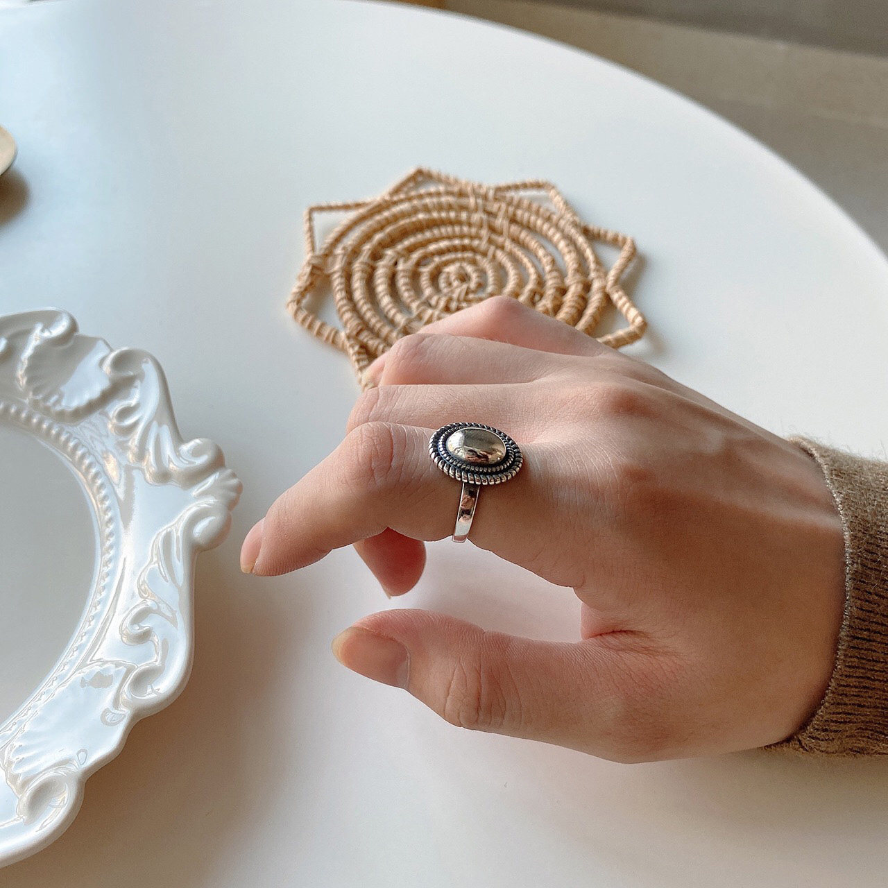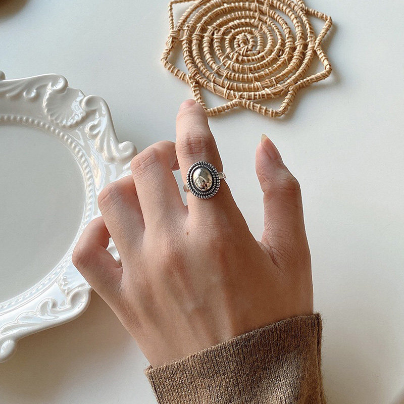 Recommended into the owner's own oval retro Thai silver ring 925 sterling silver open ring children's ring