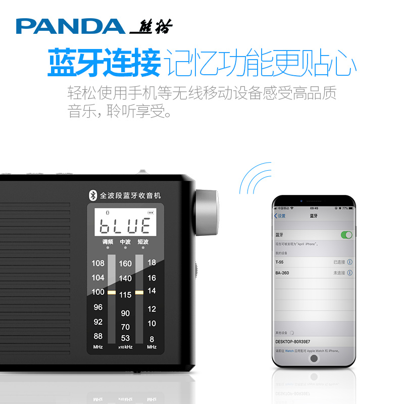 Panda Radio T-55 Bluetooth Full Band Big Volume BIG VOLUME CARD SOUND Seniors New Portable Singing Play Seniors mp3 Music player with body Listen to charge Semiconductor Sound All