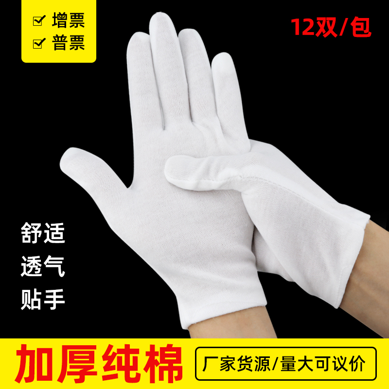 White Gloves Thin working gift instrument Venewenplay Jewelry Quality Inspection Work Disc Pearl Drive Thickened White Quality Cotton Gloves